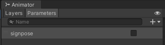 애니메이션 레이어를 제작할 때는, 트랜지션에 쓸 조건(파라미터)을 직접 등록해야 합니다.