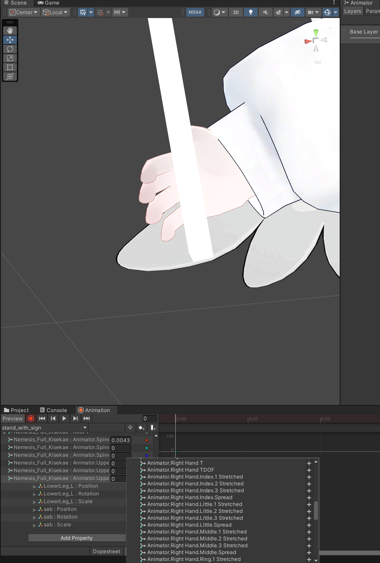 왜냐면, 이대로 Base 레이어에 넣으면 컨트롤러를 잡는 모양에 따라 손모양을 바꾸는 Gesture 레이어에 묻혀서 적용이 안 되기 때문입니다.
