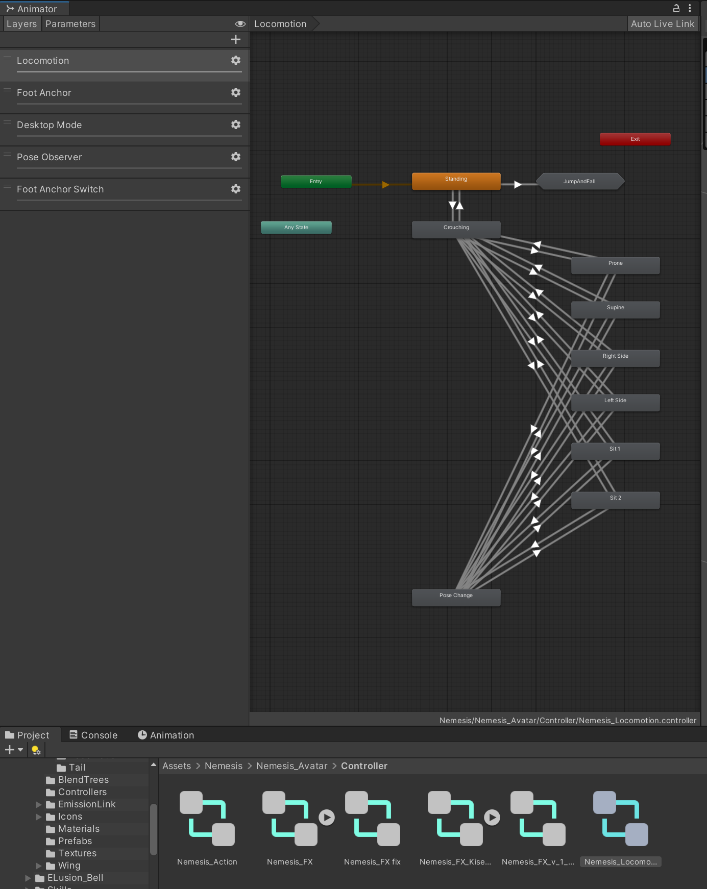 팁으로, 많은 포즈 에셋들이 Base 레이어를 통째로 들어내고 독자적인 애니메이터 컨트롤러 파일을 설치하는 방식입니다.