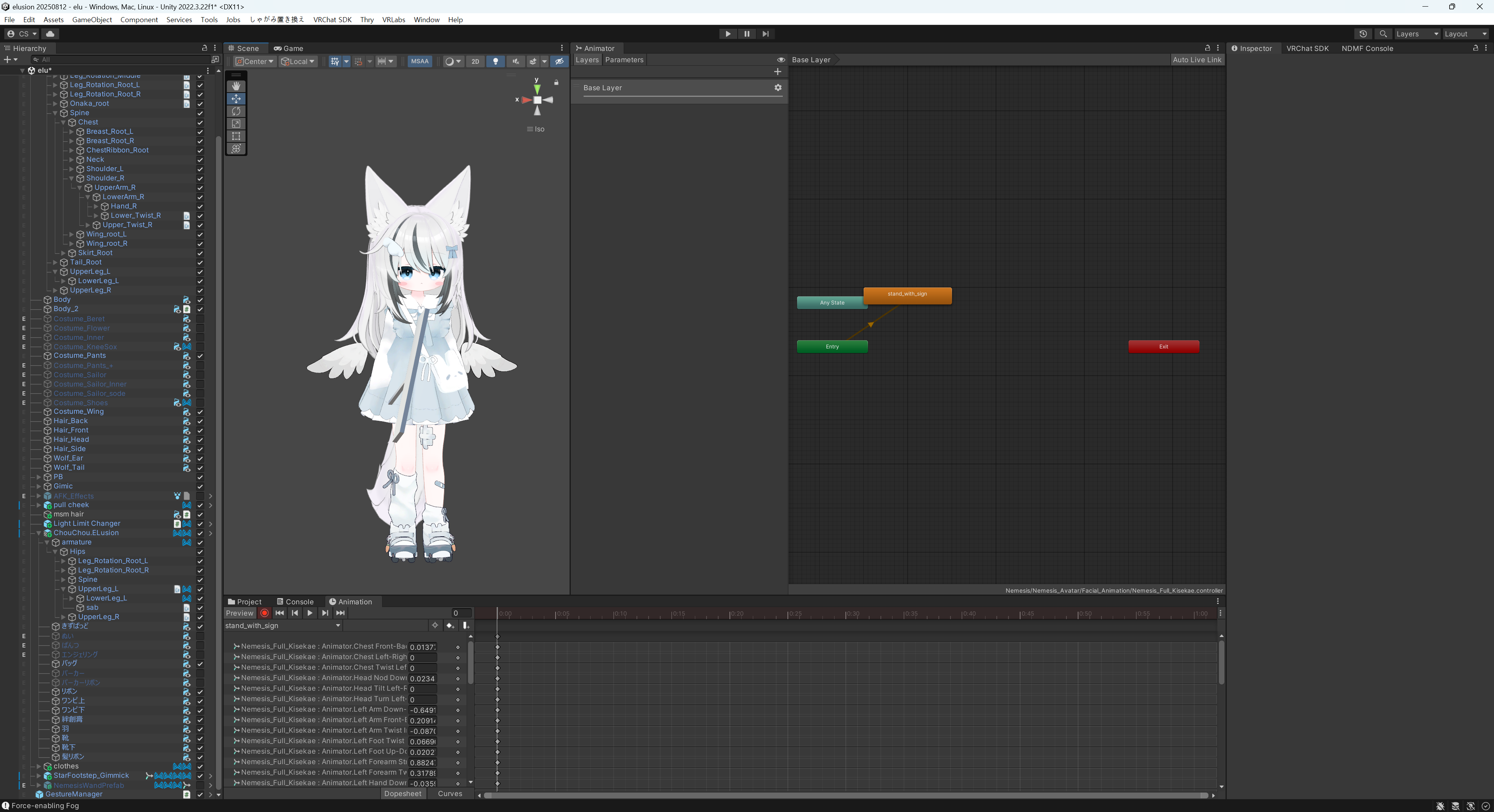 이렇게 플레이어블 레이어의 계층 구조와, 애니메이션을 녹화하는 방법, 프로퍼티를 추가하고 수치를 직접 조절하는 방법, 모듈러아바타 의상이 녹화 프리뷰에 따라오지 않을 때의 해결법, 단일 오브젝트를 캐릭터의 신체 부위에 비파괴로 고정하는 방법, 상태와 전이의 간단한 이해, 애니메이터 컨트롤러 파일을 구성하는 방법, 적절하게 애니메이션을 아바타에 적용하는 방법까지,