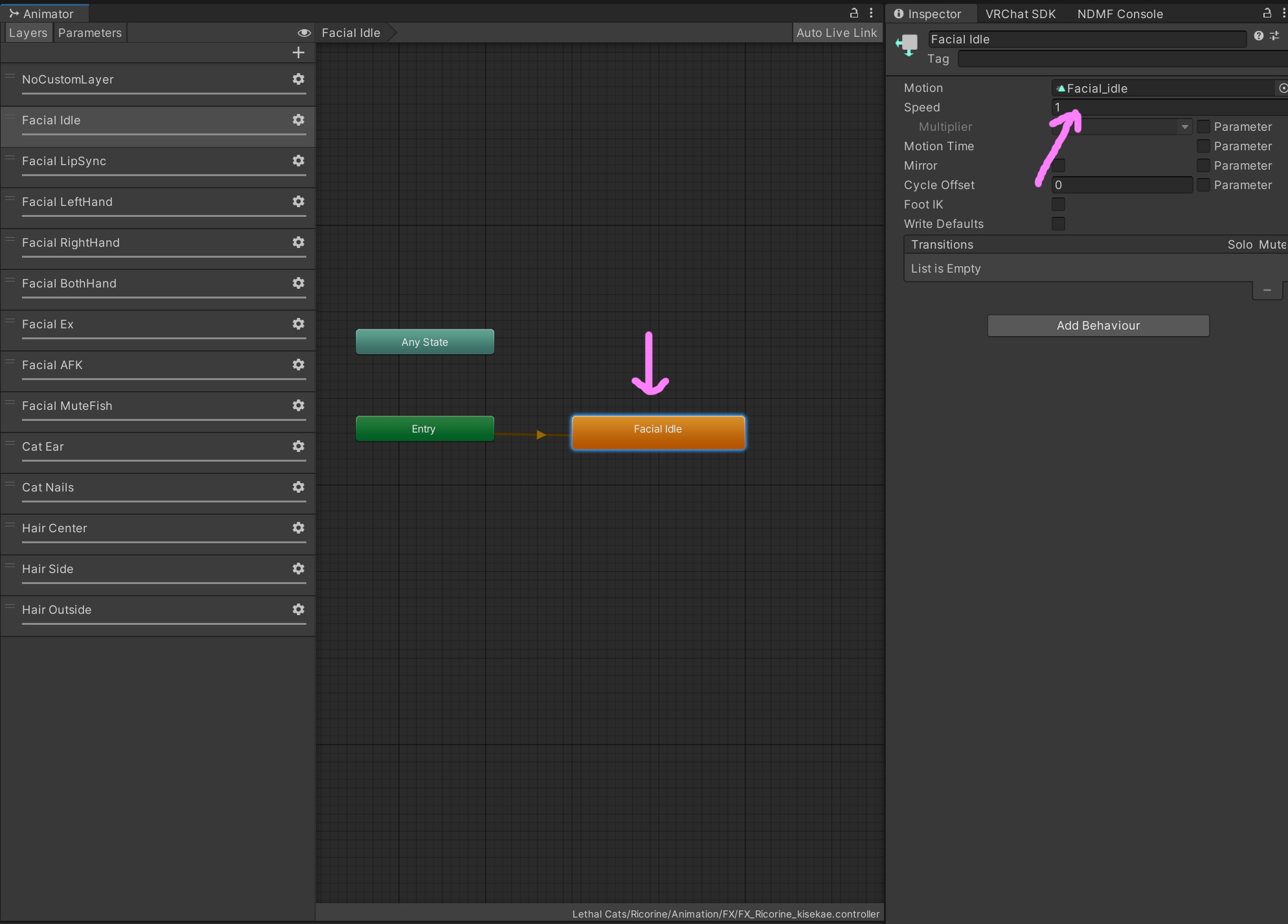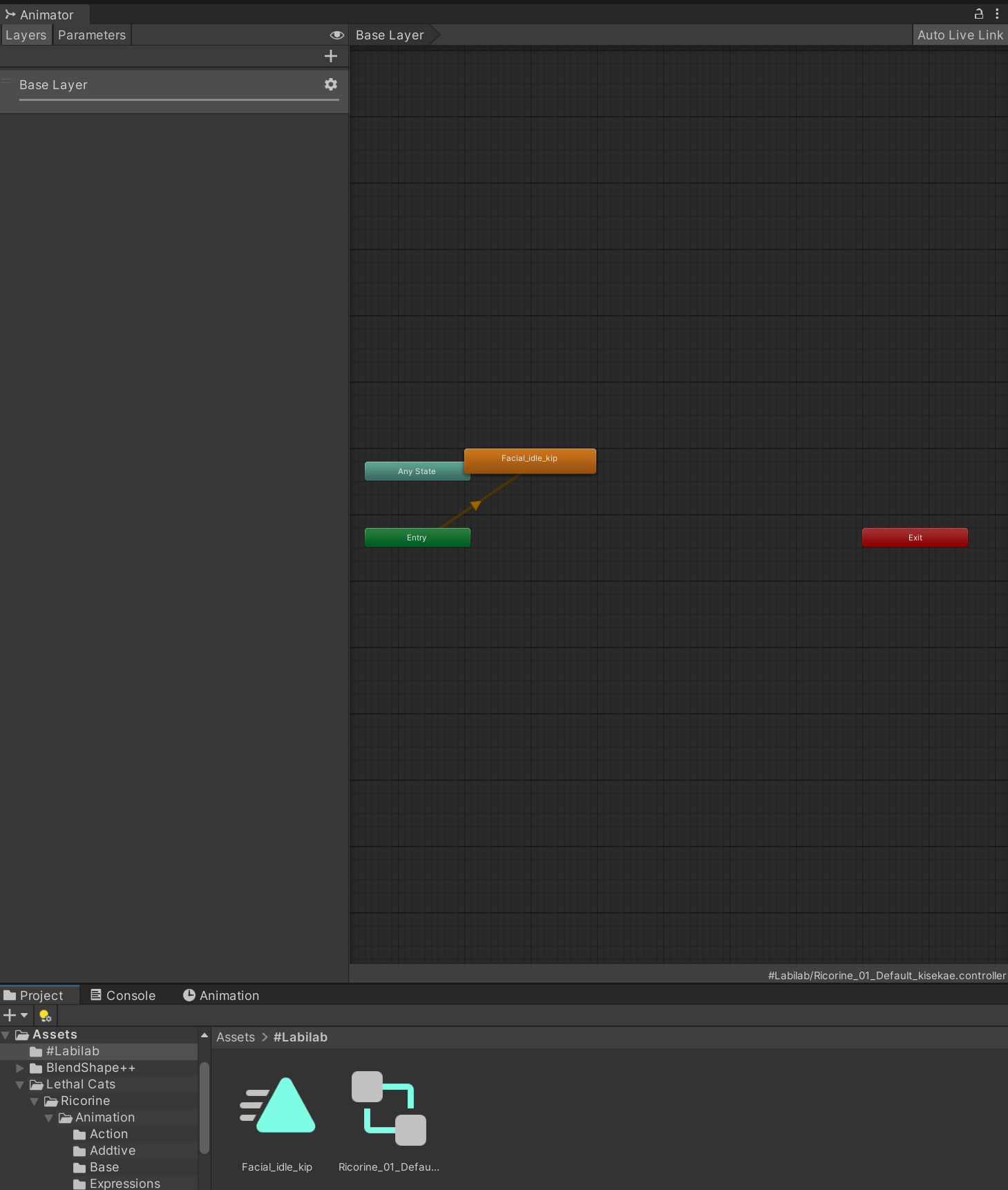 이 아바타는 Facial_Idle이라는 상태를 기본으로,