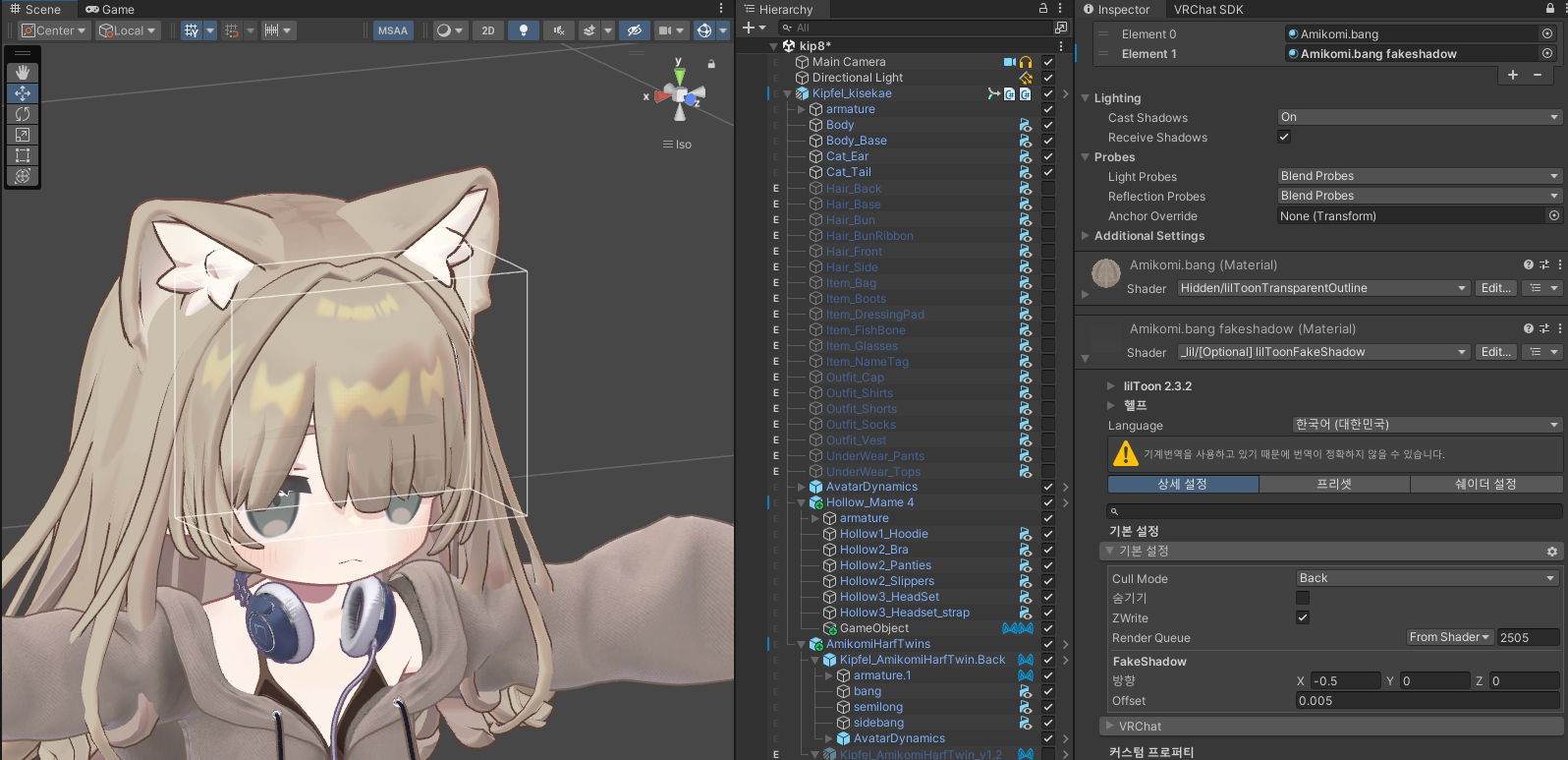 제가 사용하는 아바타는 원본 헤어에 fakeshadow가 적용되어 있던 아바타이고,