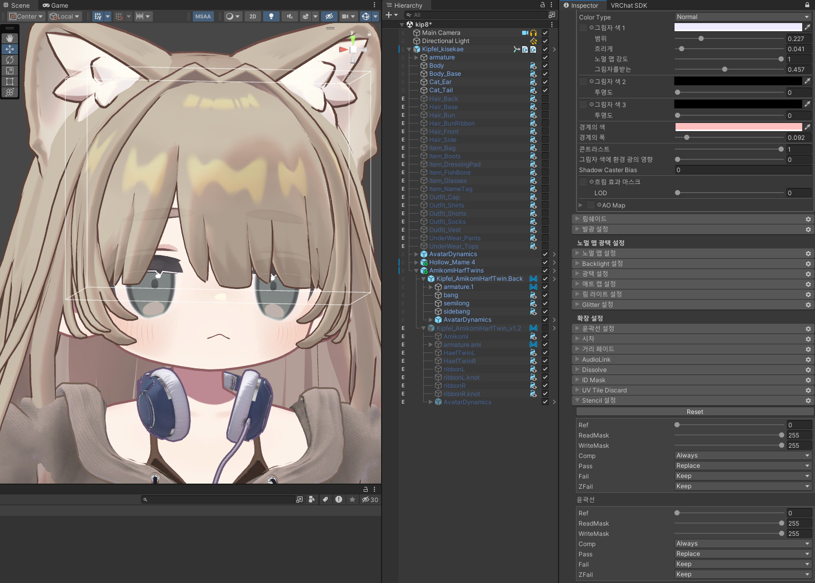 얼굴 < 그림자 < 앞머리 이 세 마테리얼의 그려지는 순서 (Render Queue) 도 중요하지만,