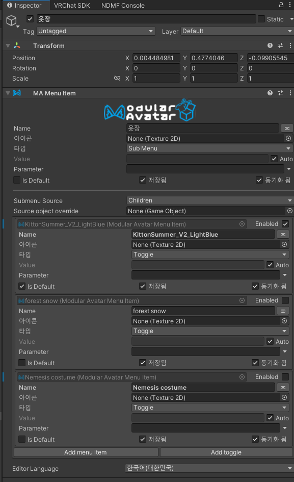 2025년 기준으로, 의상/기믹 제작자들은 전부 모듈러 아바타 컴포넌트로 메뉴를 쉽게 제작합니다.