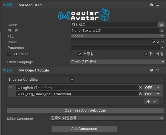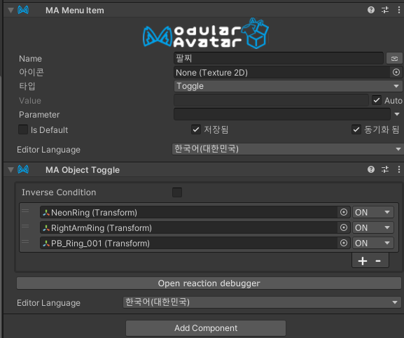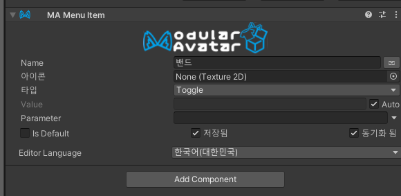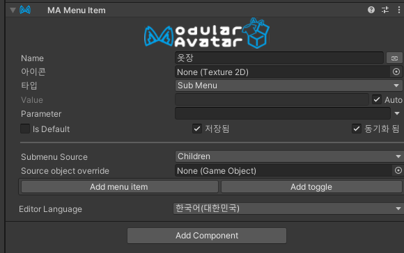설정한 토글 메뉴를 아바타 메뉴에 추가해주는 컴포넌트입니다.