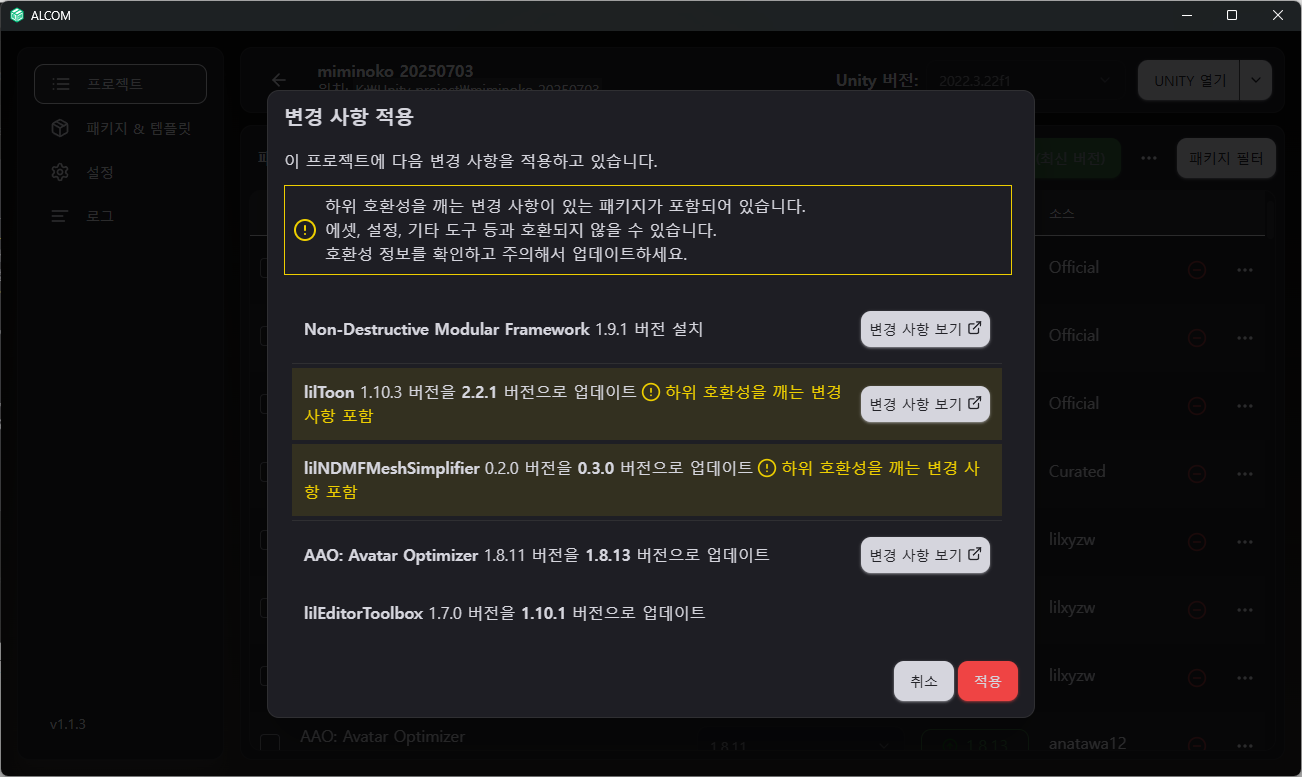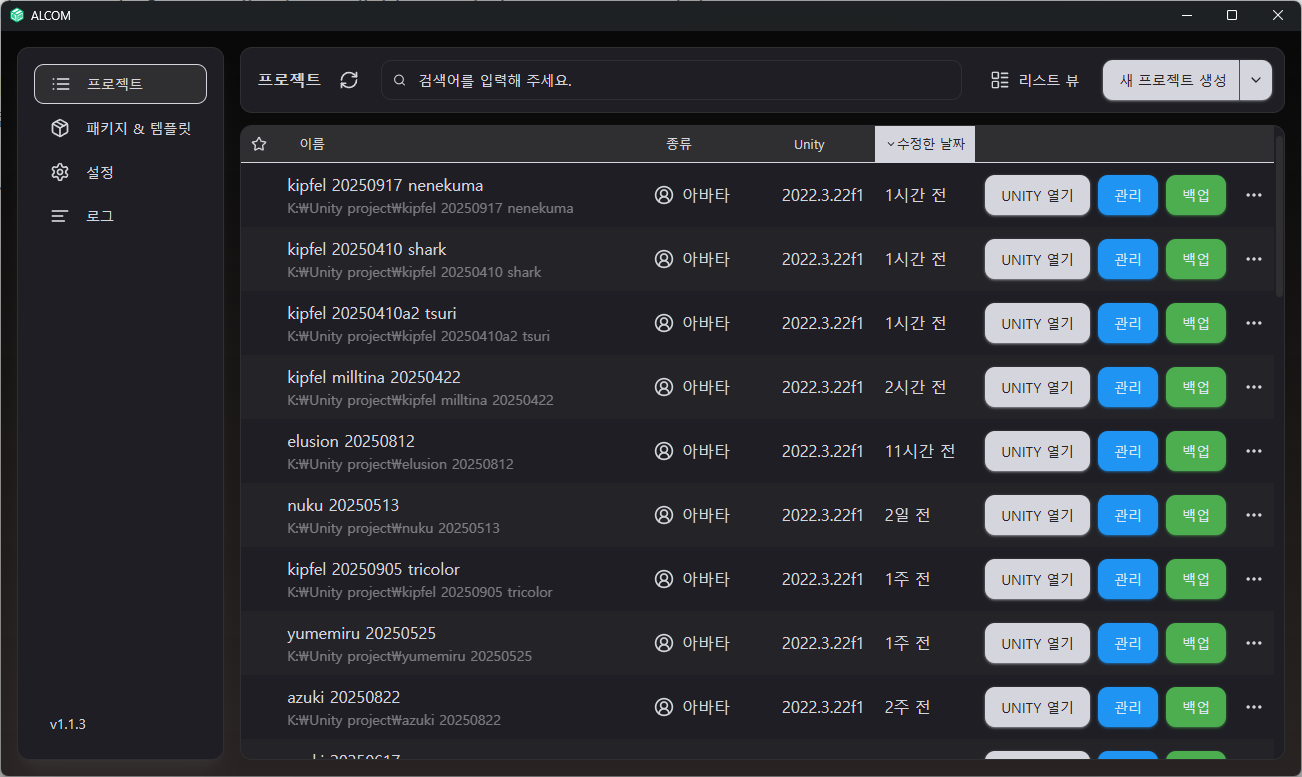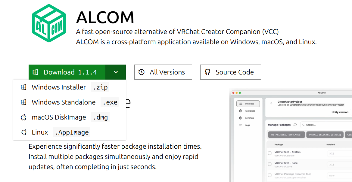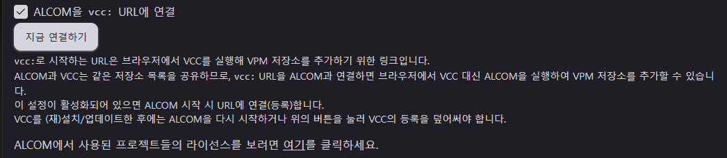 ALCOM은 VCC와 동일하게 VRChat용 유니티 프로젝트를 관리하는 소프트웨어입니다.