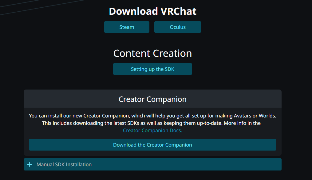 VCC는 vrchat.com에 로그인을 하지 않아도 VCC 공식 문서에서 항상 최신 버전의 설치 파일을 다운로드받을 수 있어요.