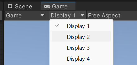 Game 뷰 좌상단에서 이렇게 설정한 화면을 전환하면서 여러 뷰를 이용할 수도 있습니다.