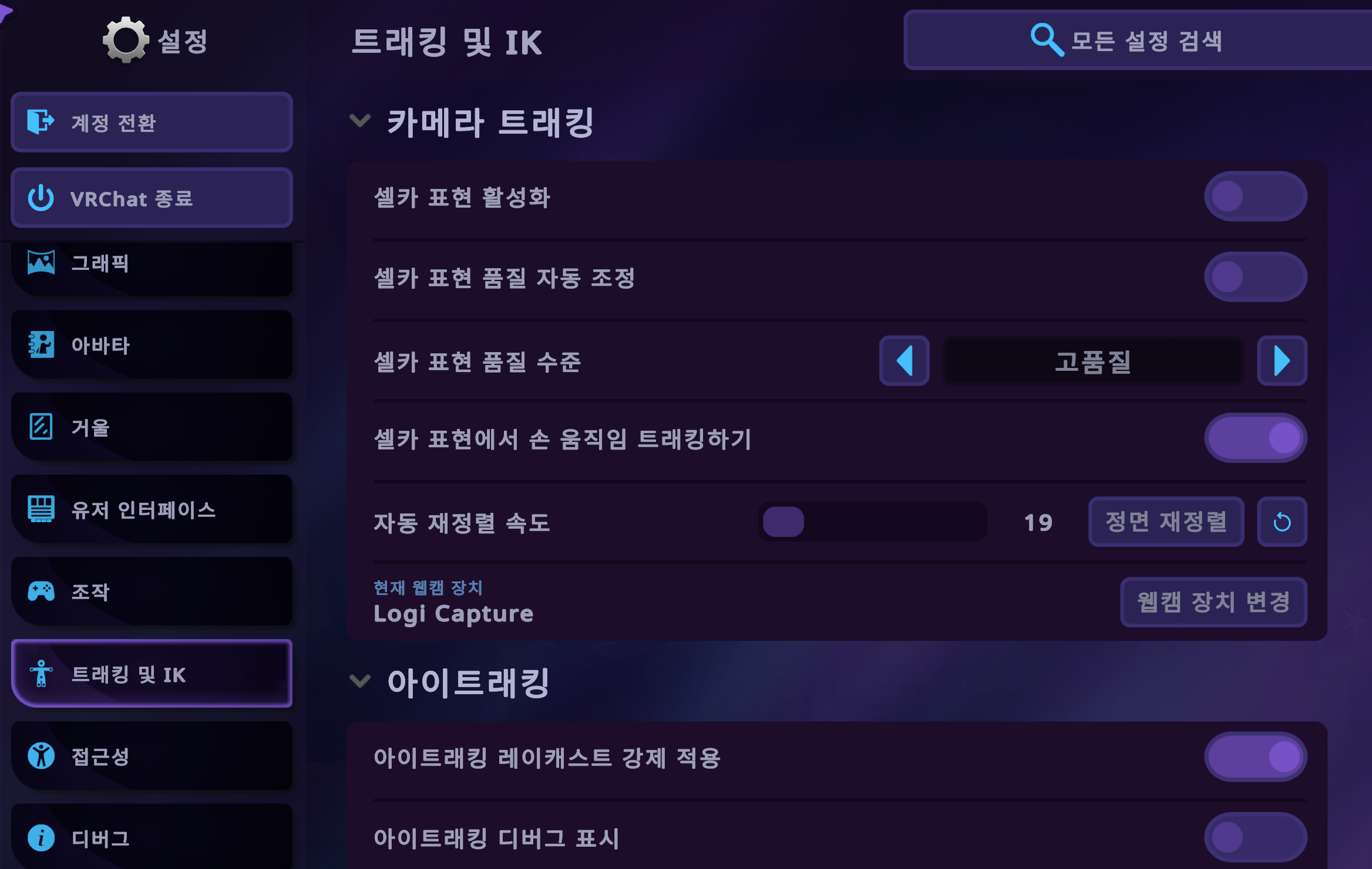 혹은 설정 펼치기 (하단 톱니바퀴 아이콘 더블클릭) - 트래킹 및 IK 설정 부분에서 확인할 수 있습니다.